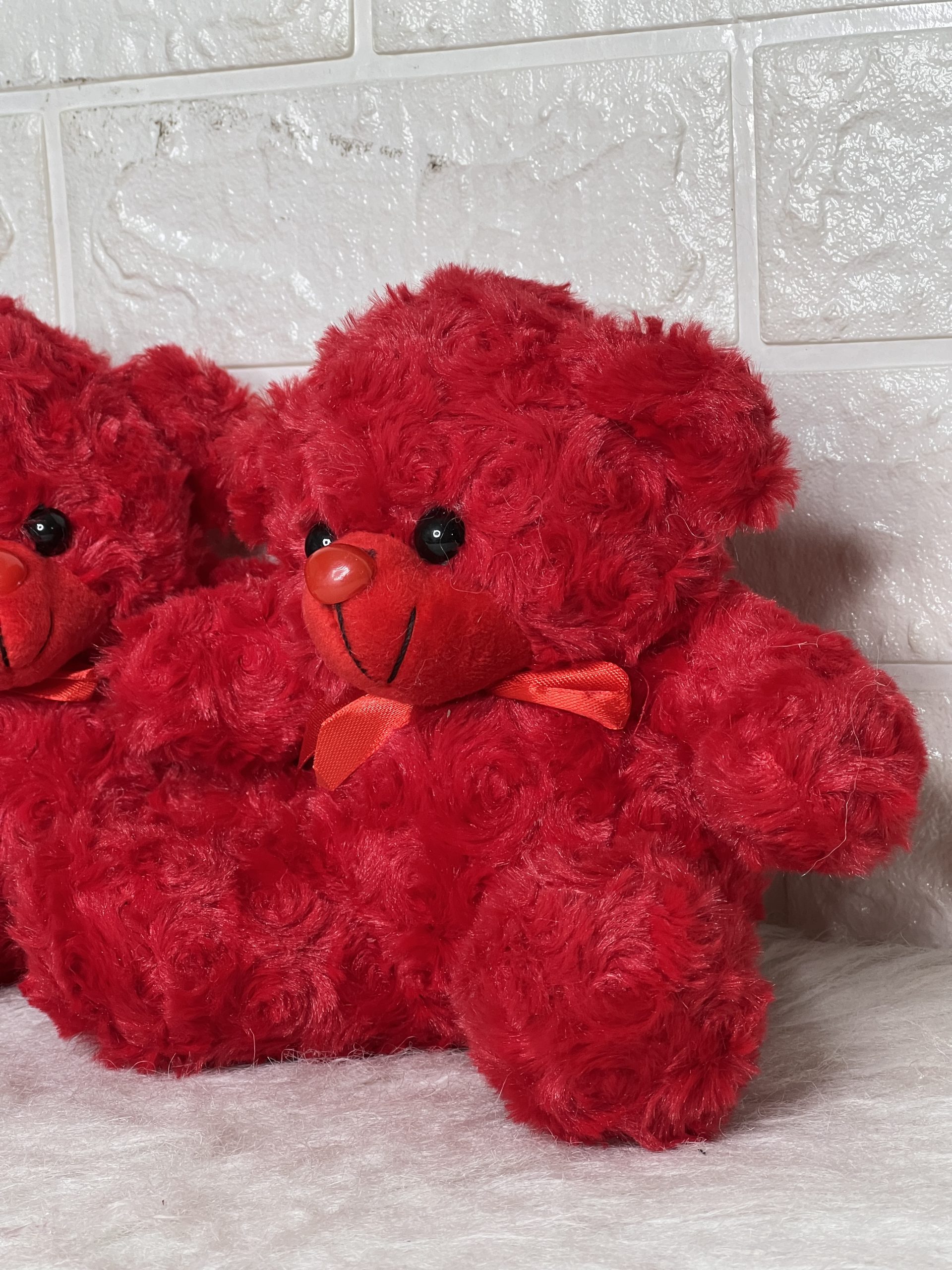عروسک خرس قرمز ۲۲سانتی  پارچه خزدار قابل شستشو الیاف درجه یک