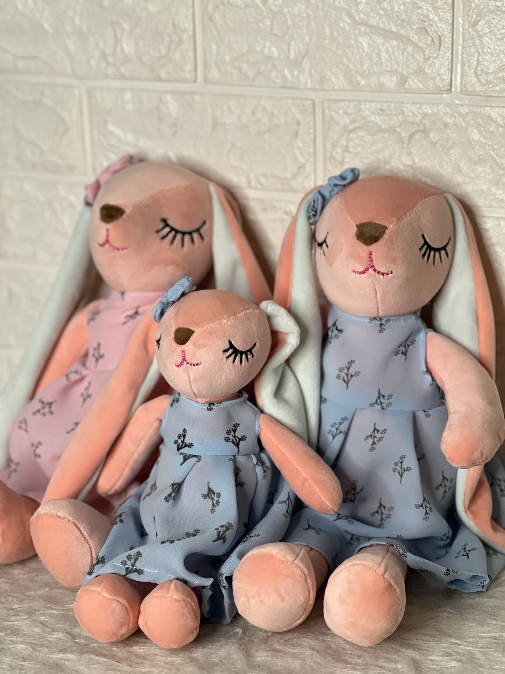 عروسک خرگوش آنجل ۳۵سانتی و ۴۵سانتی پارچه نانو الیاف درجه یک قابل شستشو چشم گلدوزی